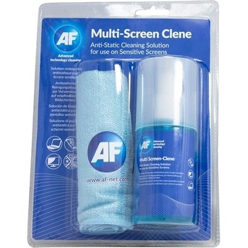 Čisticí roztok AF Multi-screen Cleen je určen pro čištění různých typů obrazovek a skleněných povrchů. Obsahuje 200 ml nehořlavého gelem ve spreji, který neobsahuje alkohol a má antistatické vlastnosti. Součástí balení je 15x15 cm utěrka z mikrovlákna. Vhodný na CRT, LED, LCD.