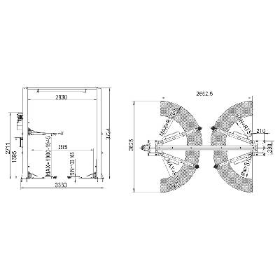 - Symetrický dvousloupový zvedák má oba nosné sloupy umístěné přímo proti sobě, což znamená, že vozidlo je zvedáno a drženo ve středu jeho hmotnosti. To poskytuje velmi dobré vyvážení pro vozidla s centrálně umístěnou hmotností.