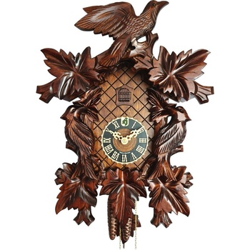 Kukačkové hodiny německého výrobce Hones z oblasti Schwarzwaldu. Jsou vybaveny mechanickým 1-denním strojkem, zhotoveny z lipového dřeva a ručně vyřezávané. Kukání zazní v půl na 1x a každou celou hodinu podle počtu hodin. Možnost vypnutí kukání pomocí boku páčky. Výška hodin 48 cm (měřeno bez kyvadla).