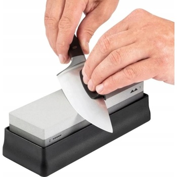 Nejlepšího výsledku dosáhnete, když hranu nože nabrousíte nejprve hrubým a poté jemným kamenem.