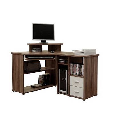 PC stůl rohový s nástavcem na monitor a výsuvem na klávesnici Theo